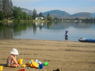 Great day today camping at Lakeside Resort on Tuk-El-Nuit Lake as we whipped up to Penticton and hammered #14 of our 50 Things to do in BC Before You Die list. I awoke at the crack of dons ass and tried my hand a fishing again; I had no luck but it was awesome being out there on the dingy first thing in the morning. After breakfast we went down to the beach for a quick swim and to play in the sand. The kids love it so much that it is hard to get them to eat their breakfast as all they want to do is go to the beach, nothing wrong with that though.